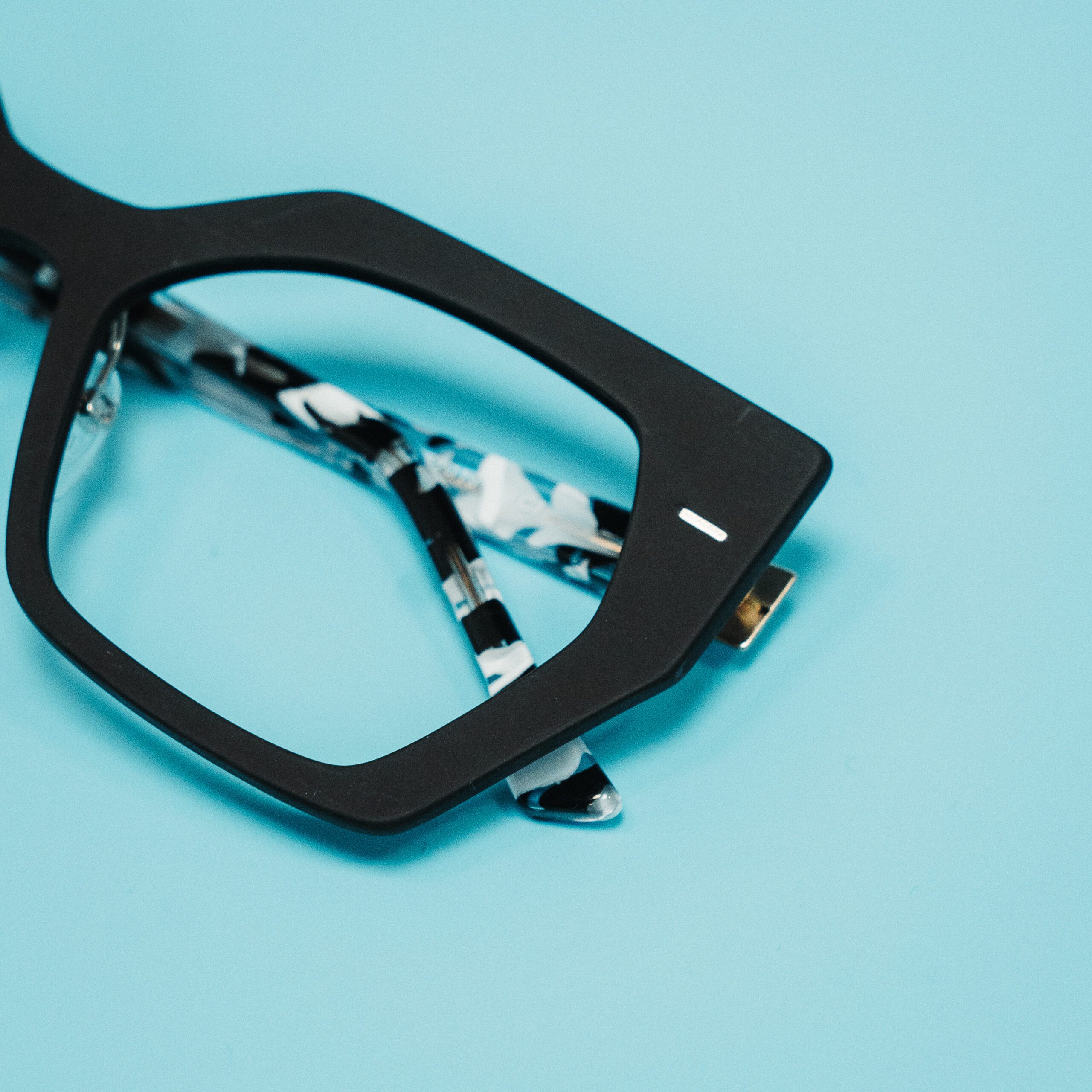 La caratteristica che definisce Aura sono le aste in acetato, un materiale che apre infinite possibilità cromatiche e permette di lavorare texture, sfumature e finiture irripetibili. Tartarugato, maculato, geometrico: ogni paio è diverso dall’altro, ogni asta racconta qualcosa di specifico su chi la indossa.